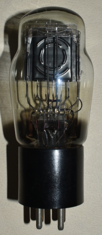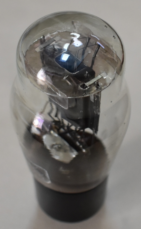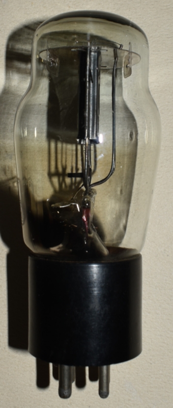 ガラス管壁に、ブランド名と管名が白色でプリントされている。プレートのエンボス模様は旧式だが、どうも戦後製の様。(PRCはNECの二級品と書いていたが、誤りだった。訂正する。)