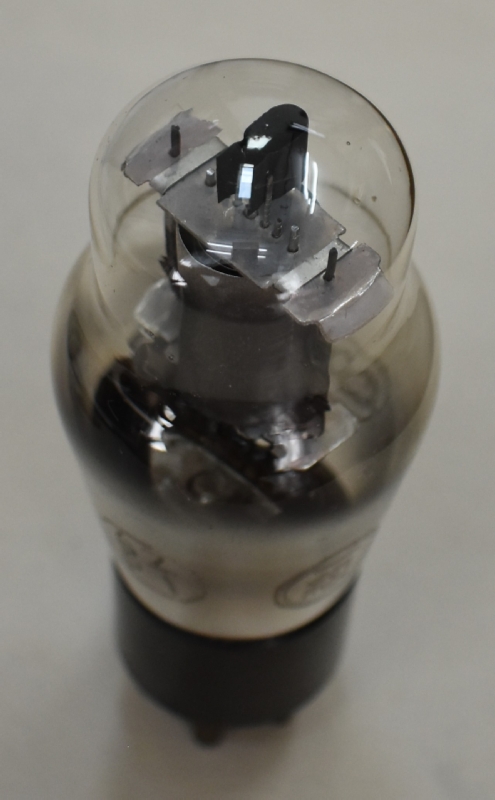 管壁に赤プリント。ニッケルプレート。フランジは、溶接。カソードスリーブの頂部を潰すことで、ヒーター中点と接続しているのは実用新案だったはず。