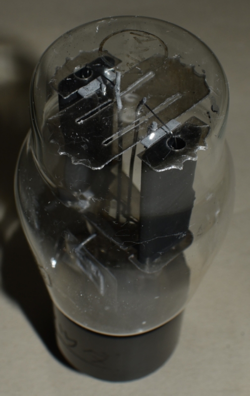 トップからの眺め。電極はガラスビードで支えている。バヨネットピン付き。